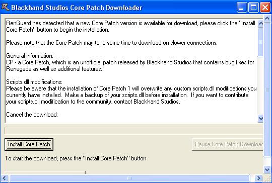 Note that you need to have RenGuard installed if you are installing the client CP2 patch (you dont need Core Patch 1, the installer will install the needed bits for that too if you dont have it installed)