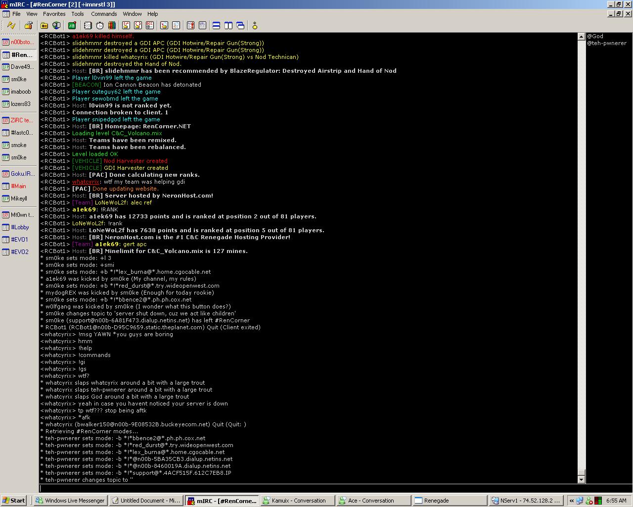 erm. You made it invite only, K, but, you banned everyone except me n u from my channel, screen shots shown above shows how you took over #rencorner on n00bstories and banned everyone from my channel. Then in #rencorner on st0rm, you started spamming it, then having a convo with an IRC Op. Also. You hacked my servers, hacked my hosting forums (now replaced) and spam the living hell out of my rencorner forums. The more shit you continue to do, the more shit your getting on your rep. I don't care about mine since everyone here hates me. Atleast people will hate you as well.