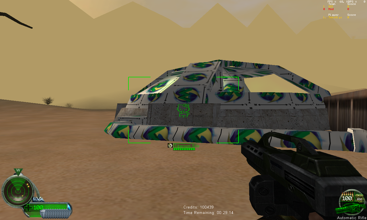 And If I added more vehicals... it would of been low on FPS. (Which is the reason there isn't as many Infantry bots. Tanks bots, believe it or not, consume a lot less FPS than Inf bots. That is why I was able to include so many without the frame rate dropping too drasticly. (The low frame rate is because of the inf that are there, and some of the vehicals)