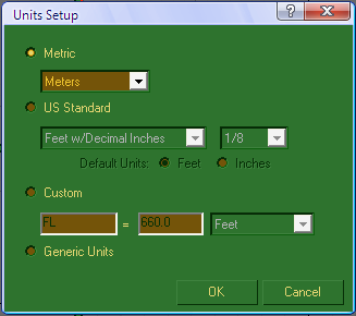 To change the units, simply click on "Units Setup..." and choose the units you want: