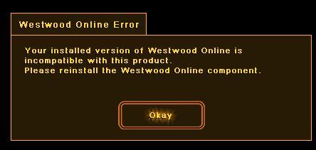 When I Want To Play On Westwood Online I Get This Messege, Please Help.