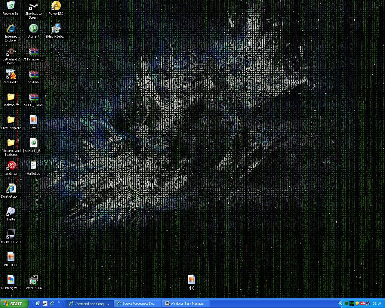 This is the coolest desktop add-on doo-dad thing ever! Try it out! It makes your background animated with matrix symbols. The coolest part is it will still show your old background through it! You can also change the colors and settings- check it out and download it here. http://zmatrix.sourceforge.net/index.html#Download