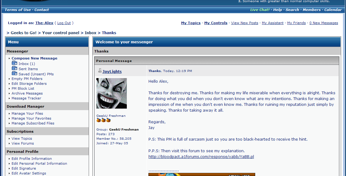 Sad to say, I was too engrossed in getting the answer to Sir Kane's technique. Too engrossed in feeding and releasing my query to geekstogo. He was taunting, ignoring and being a unreasonably mean person. Never thought a person like Sir Kane would survive in the community being such a mean person to people who are interested in understanding facts(Unlike the download-unzip-run-hack type of leecher). Now one possible reply to this statement would be,"Never thought a person like puffaway could even be a temp mod in the server but ends up he cheats." Well for two weeks that is. Nevertheless it's still cheating.