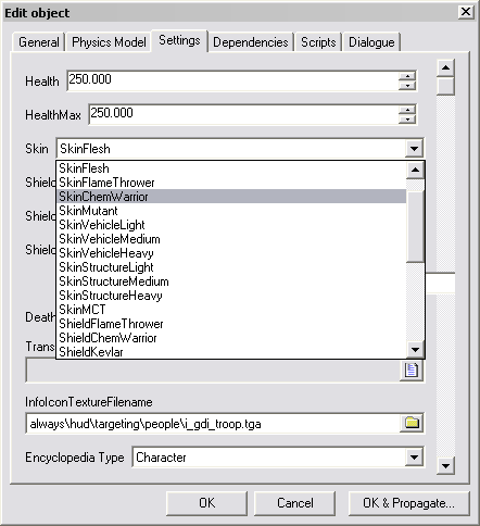 Fill in the other parameters. The cost (in credits) and the player type, which is the team who can poke it. 1 is GDI, and 0 is Nod. Click OK on the Script Definition window and OK on the edit object window. Your script was added. Go into the game and try it out!