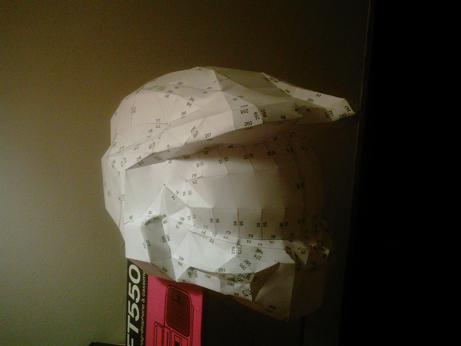 I started making the helmet and came out with this (without resin or fiberglass applied yet, just the paper model)