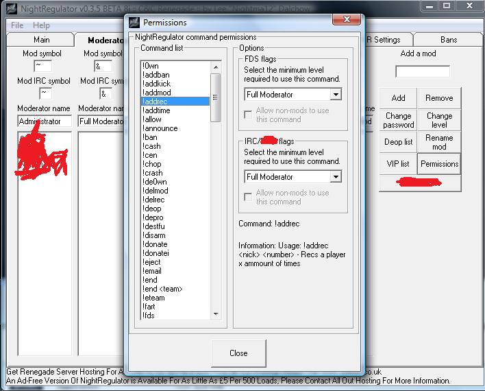 Okay right when you install NR it is the lowest level! So you have to wait for it to update itself to the latest version which takes 4 ever but there are certain things from the first versions of NR that i think should be kept...like the Moderator setup! Due to the Auto updates i have to run NightRegulator v0.3.5 BETA 8i