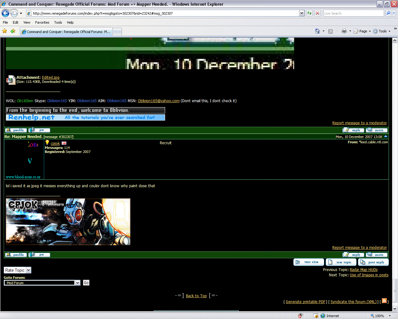 WOL: Ob165ion Skype: Oblivion165 Yahoo Instant Messenger: CaptainJohn165