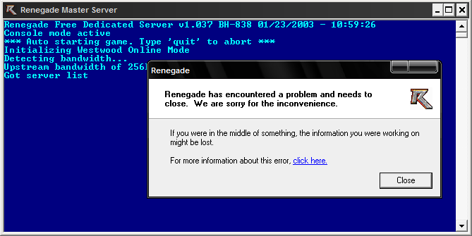 [22:48] <APBBR> Host: Quitting due to Westwood Online connection loss.