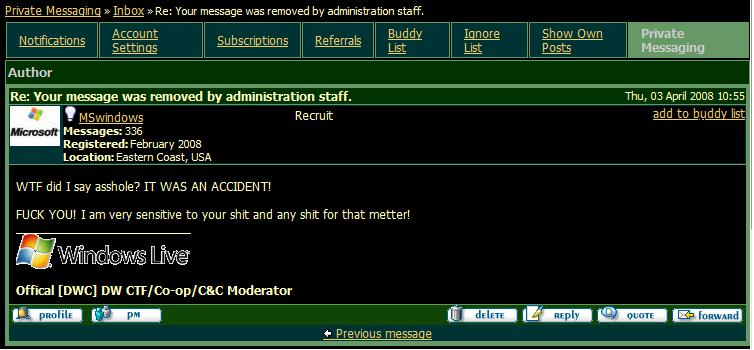 What a dickhead. If you weren't already banned for posting renegade cheat links I would give you a couple days to pull your head out of your ass.