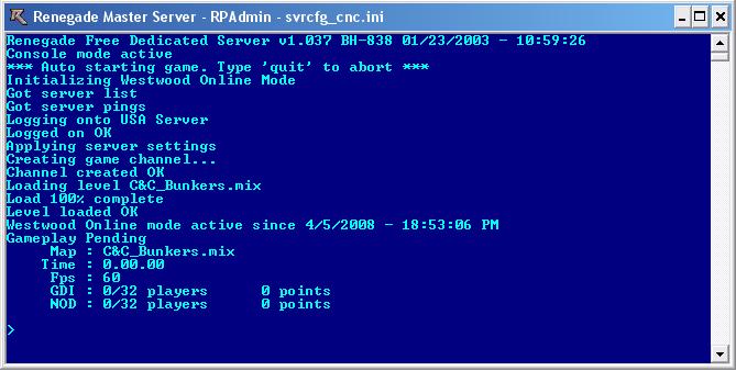 Renegade Free Dedicated Server v1.037 BH-838 01/23/2003 - 10:59:26