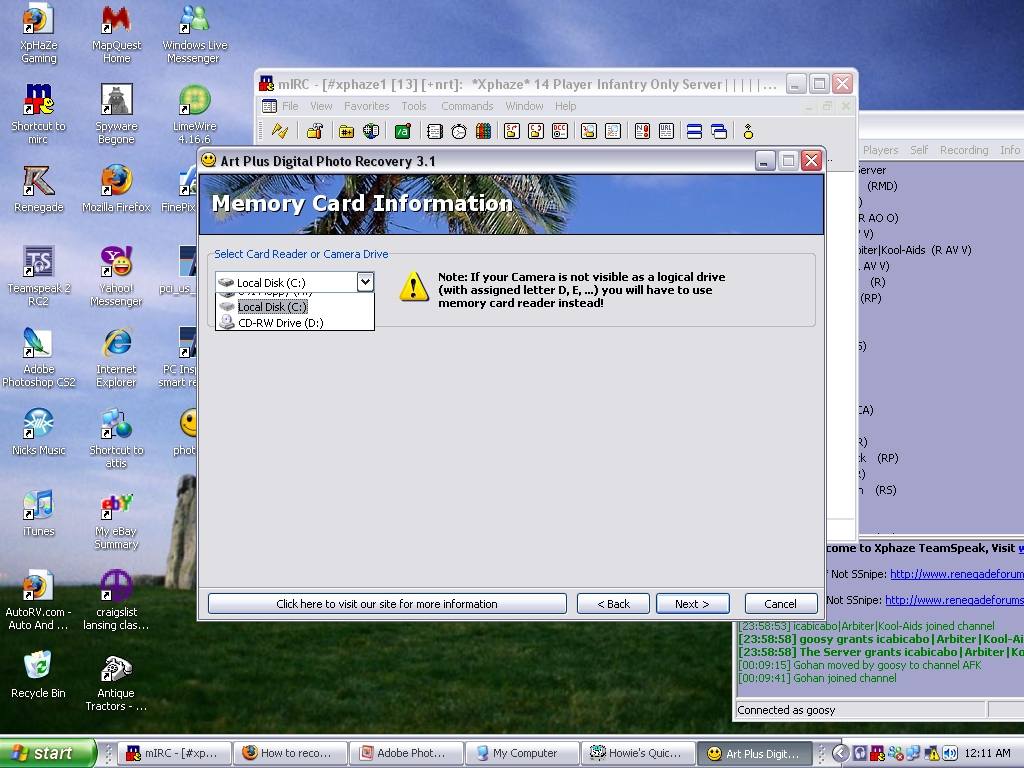 thnx for all the replys guys. ssnipe i went to those links and every one says i need to pick the drive that my camera is in and it dosnt give me an option for where my camera is. says i need a memory driver or something. forget what it was. but i told ya about it Smile. im going to give those guys i called yesterday another call and see what they can do for me.