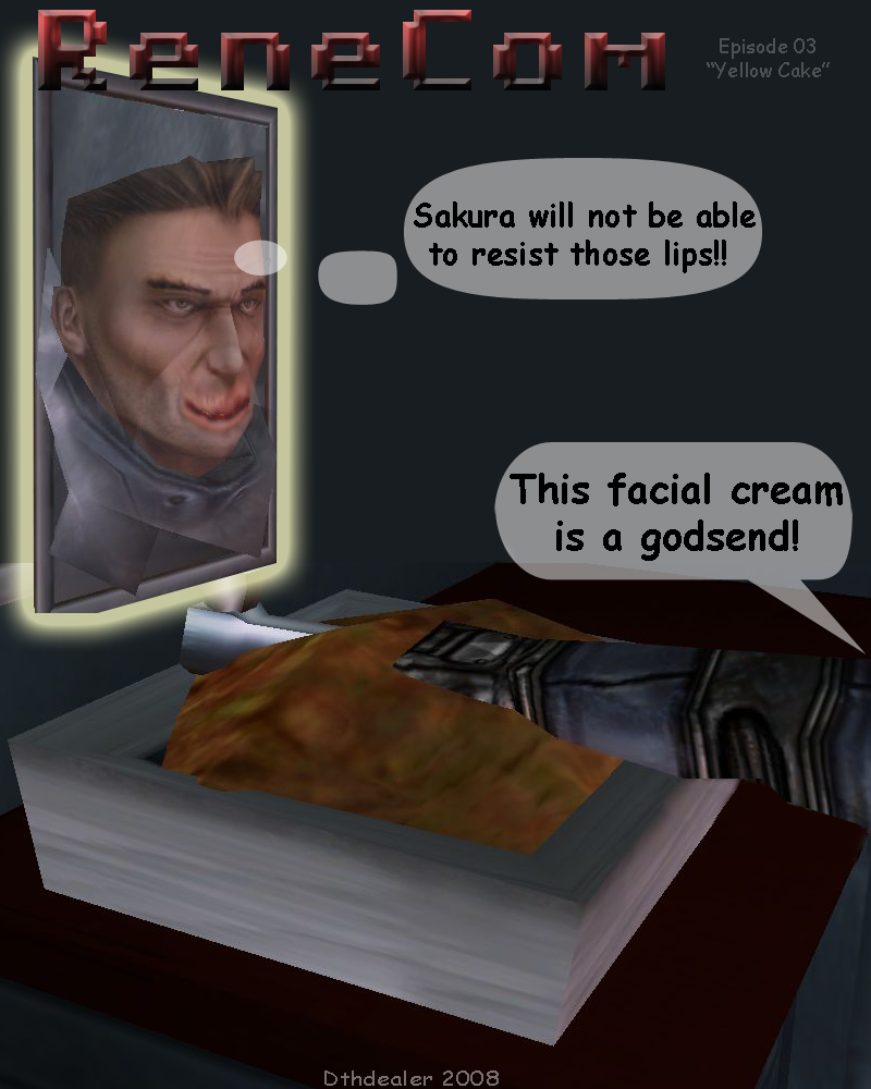 Havoc was posed in RenX for these shots (as describe in the previous post) In the third panel havoc was supposed to have a "bighead", but unfortunately resizing the bone didn't work.