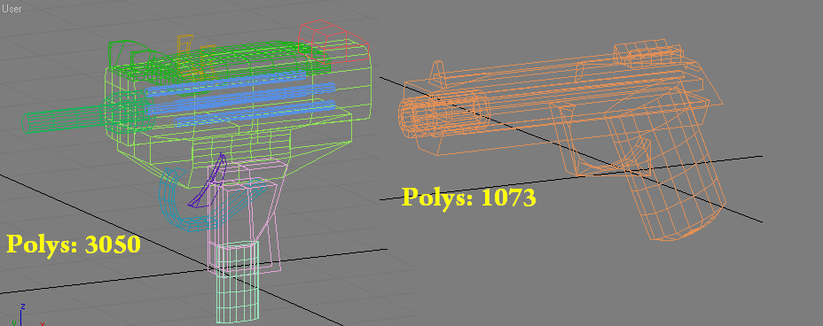 Also, most high poly weapons don't even use the poly's properly. The pistol seems somewhat alright, but holy shit, that uzi is TERRIBLE.