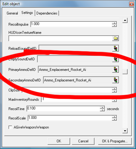 Screenshot of Weapon_FlameTank_Player with certain details circled. If double damage or other effects were intended on secondary fire, they would be controlled by these settings. Instead, they are the same. Therfore different behavior on secondary fire is clearly a bug.