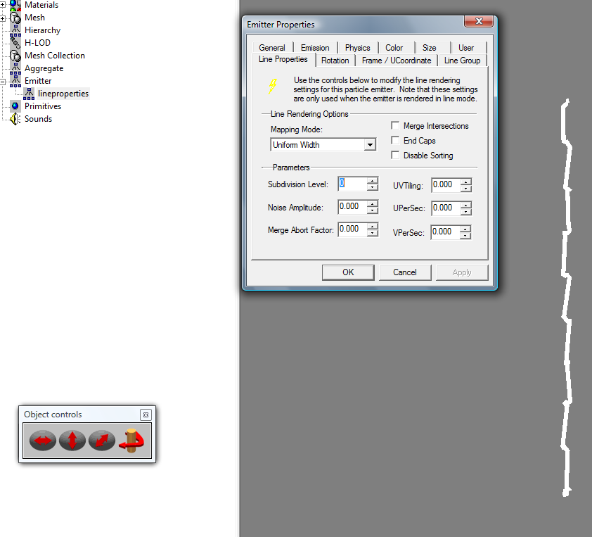 Well guess this case in percitular was Primitives, but the entire part of Line Properties is broken in emitters, I know wthis for a fact, the w3d tool doesn't even save changes made to it, as I will show below: