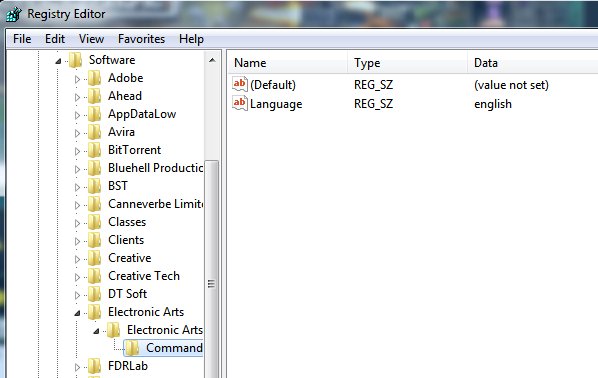 In 64bit Windows, your C&C 3 registry or anything that is natively 32bit will be inside the Wow6432Node key which is found under Software instead of just being in Software.