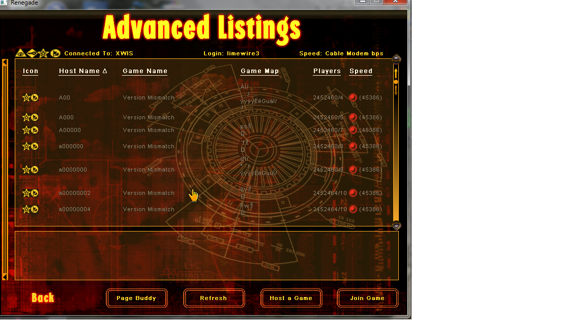 okay i deleted my account on renegade so then it would let me type in my password. well when i type in the password no games show up. show i typed in my name and the reset password i got from xwis.net/control_panel/ but then i get this screen. that says version mismatch.