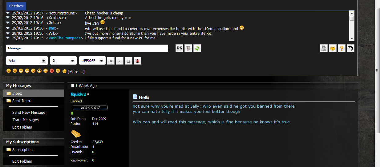 and again you say he had nothing to do with you banning me when you even said this was the case in a pm to me at storm ? along with the message I posted of facebook backs up my point