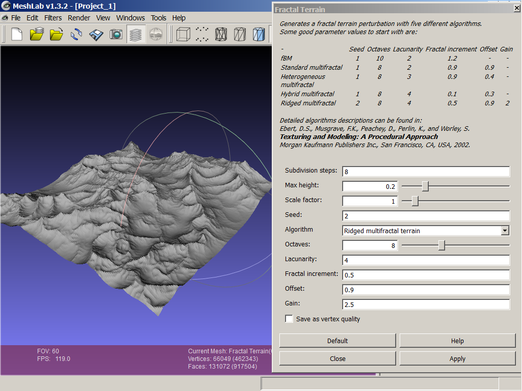 And on the topic of terrain, you can try the Filters->Create new Mesh layer->Fractal Terrain filter on for size Smile