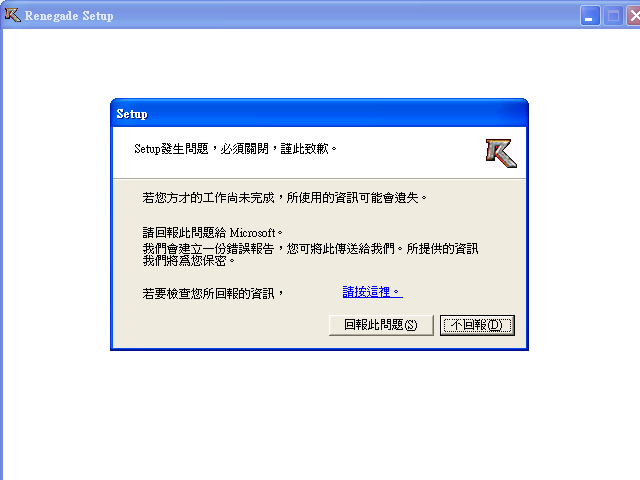 Ren used to work fine, but i formatted my computer bcuz of a virus.i tryied to install ren again, but i get this error and it crashes, any help now?