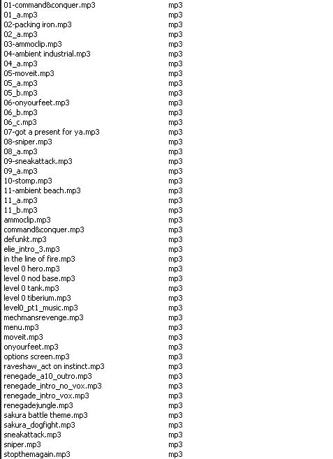 I've also included an image with all (or most) of the MP3's inside of Always.dat.