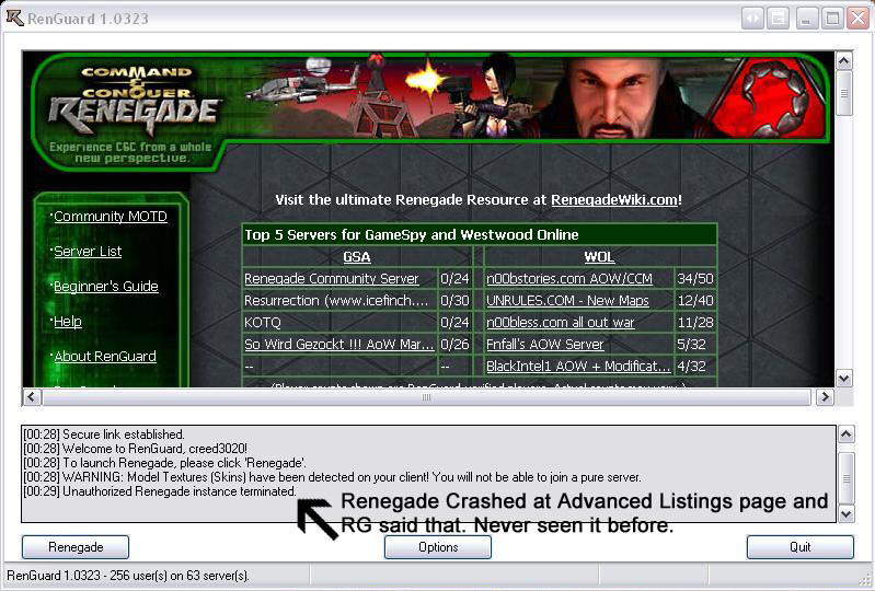 Nothing unusual, btw, we've had about 5 topics about it and it happesn to myself all the time. Just wait 20 secs before clicking 'renegade'.