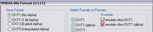 Only override the XBOX alpha if you exporting DXT5, otherwise select the other override option.