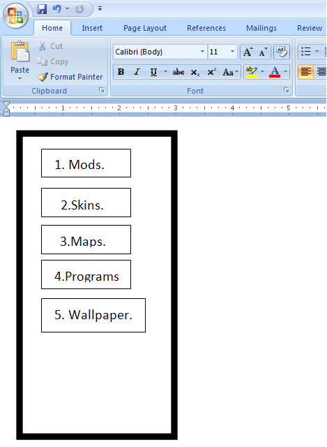 The program I am making a Word Document using Word 2007 I have a table of contents, that I want for example when you put your mouse over option "A.". it would hight light the selection, the selection would be only the words that are in the menu.