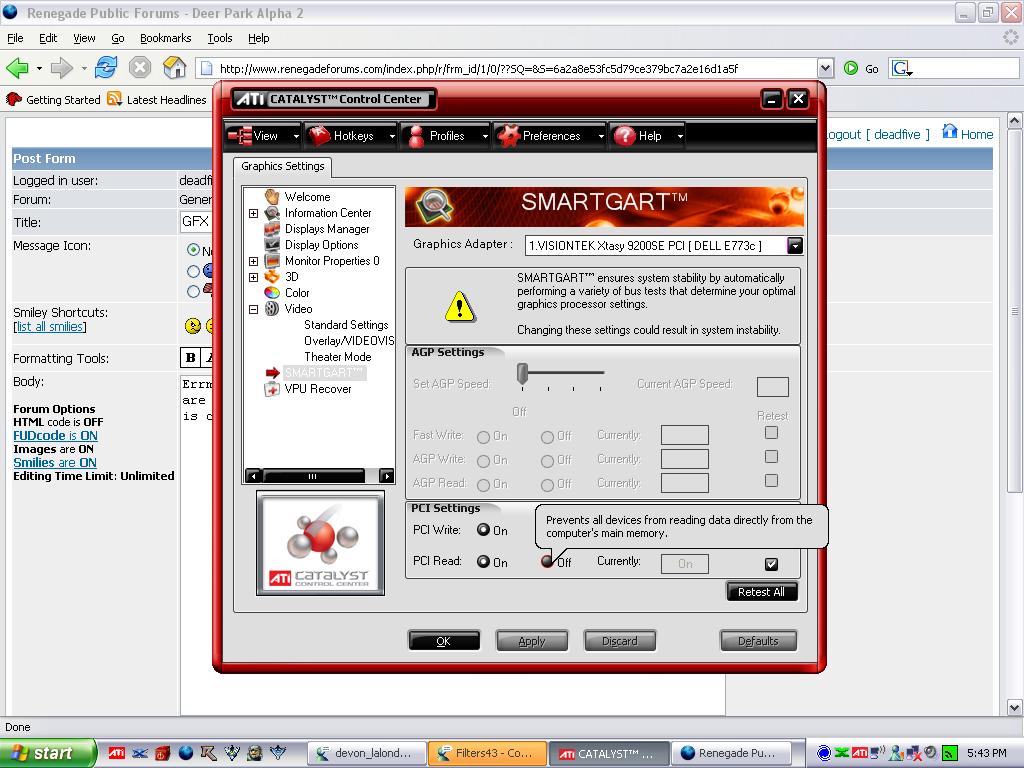 Errm...I have the ATI Radeon 9200 SE as most of you know and there are these two PCI settings that I have no clue what they are. It is called PCI write. And I can turn it on or off. Here is the screenshot: