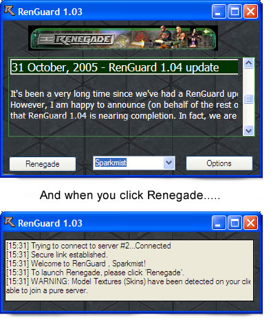 The fact of the matter is, we can't allow the Renegade client to connect to any RenGuard-protected server before the RenGuard client has finished scanning for cheats. Thus, if RenGuard launches Renegade before or while scanning for cheats, it's entirely possible that Renegade will be able to connect to a game server before RenGuard has finished.