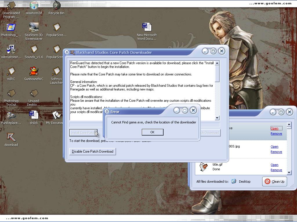 Well it seems that most people are getting farther with it then me. Everytime it gets done downloading the cp2.zip(tried with patchall.zip too) it tells me there is an error and that i need to re-load RG and redownload.