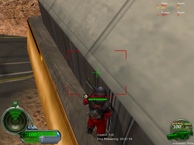 Nuking a GDI weapons factory on a flying map is pretty easy since there are special spots that of off the side of the building. Such as: