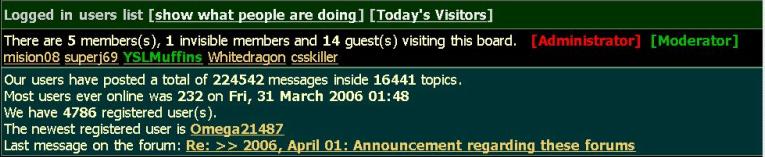 Re: >> 2006, April 01: Announcement regarding these forums [message #194801 is a reply to message #194725] Sat, 01 April 2006 18:15 Go to previous messageGo to next message
