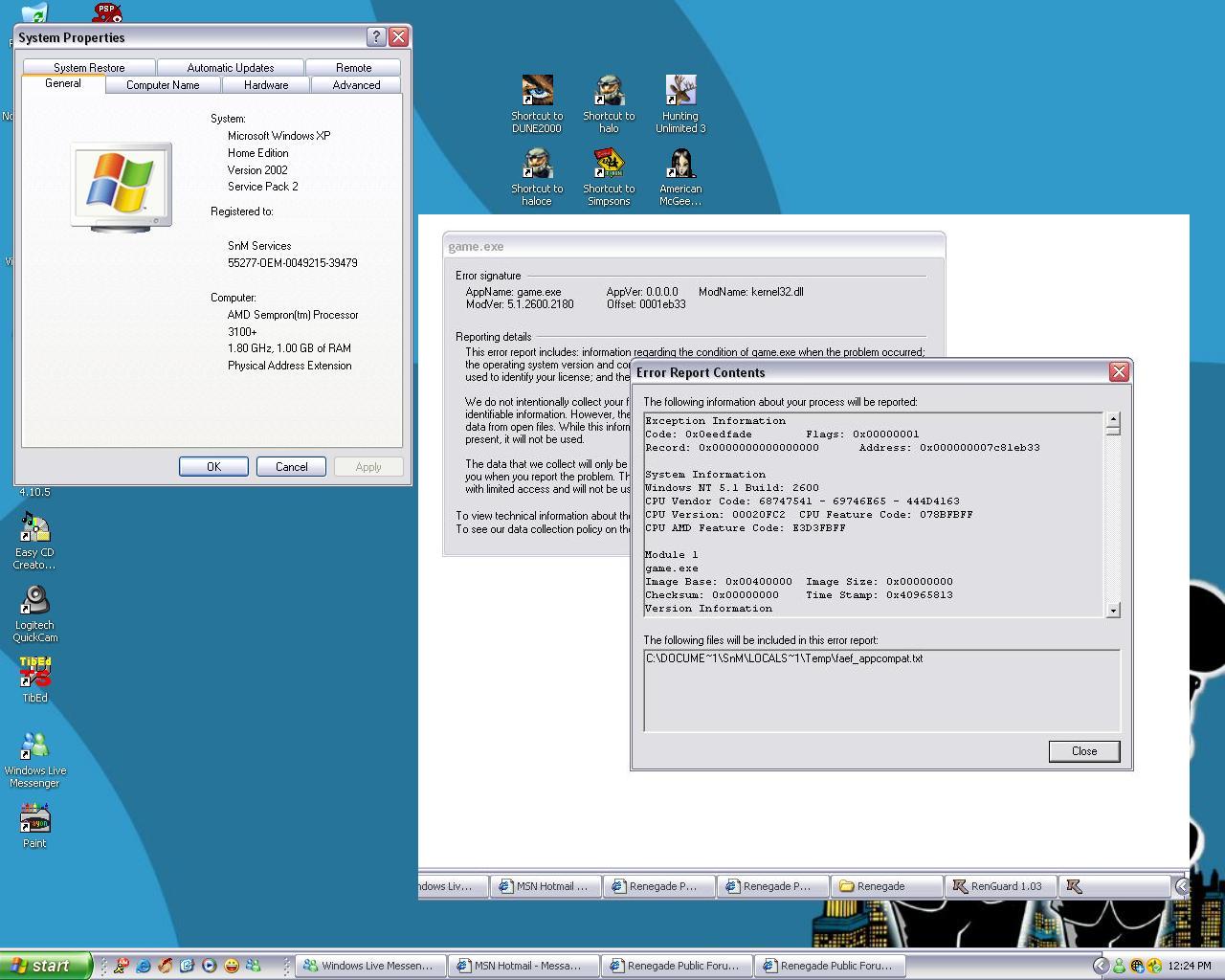 This is still v3 btw but thats my brothers account and i dont know his password. But anyways, will try installing CP1 or 2, I know its nothing to do with the Athlon 64 because i also cant get renguard to work on my old pentium chip computer.
