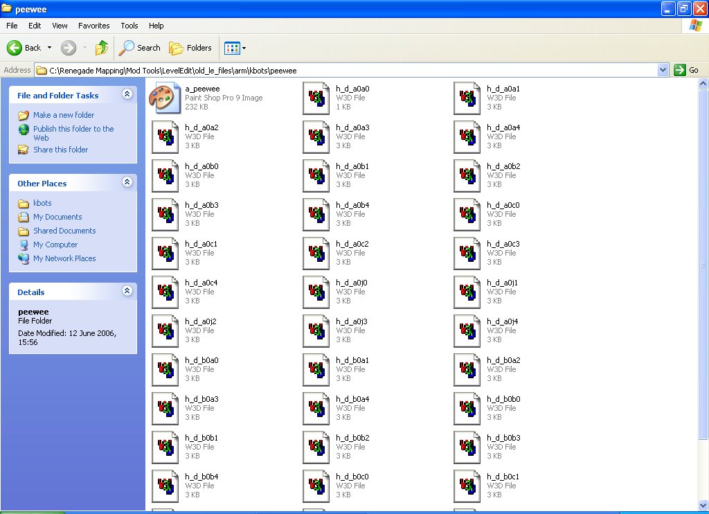 When your done with them all your LE folder might look something like this - note I used D instead of E, but later I found out that mobius (with powersuit) and perhaps other models use this letter, so don't use D unless you want to mess up mobius ;);