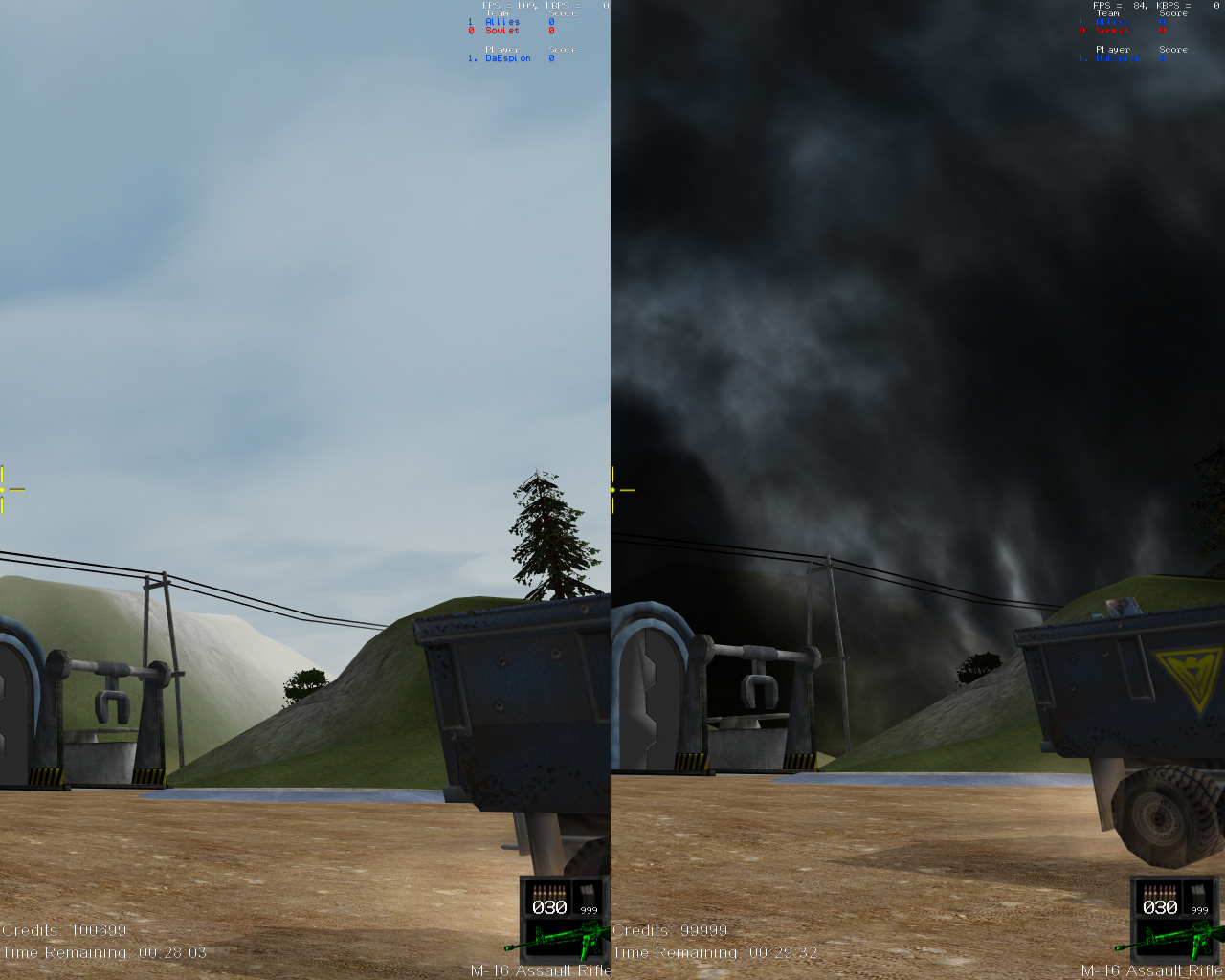 Would it be possible for the fog to clear just around the tank so that other (friendly Soviet) units can see the tank? Like it worked in RA.