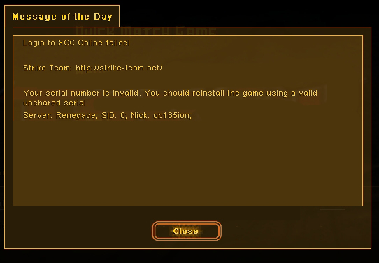 | Oblivion165 wrote on Fri, 25 August 2006 09:57 | I get a "Unable to connect to westwood online" or a "Your game has been rejected" or a "You need an update in order to play online"