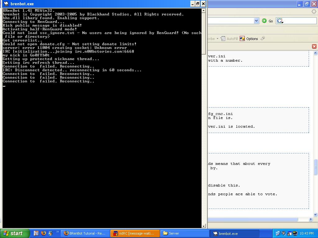 As you can see,i cant get my BrenBot to connect to irc.