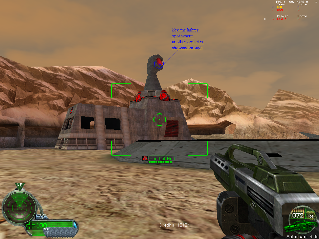 Jonwil, I'm sure you remember me complaining about how certain parts of my doors where showing through the outer door, but only if I was using 3.0 3.1 and it didn't happen with 2.9. Will I finally found an object in Renegade that this also happens to.