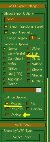 If your talking from Gmax point of view you just go into the W3d tools, which is the icon that has the hammer on it, then enable hide, 2 sided and all the collision settings.