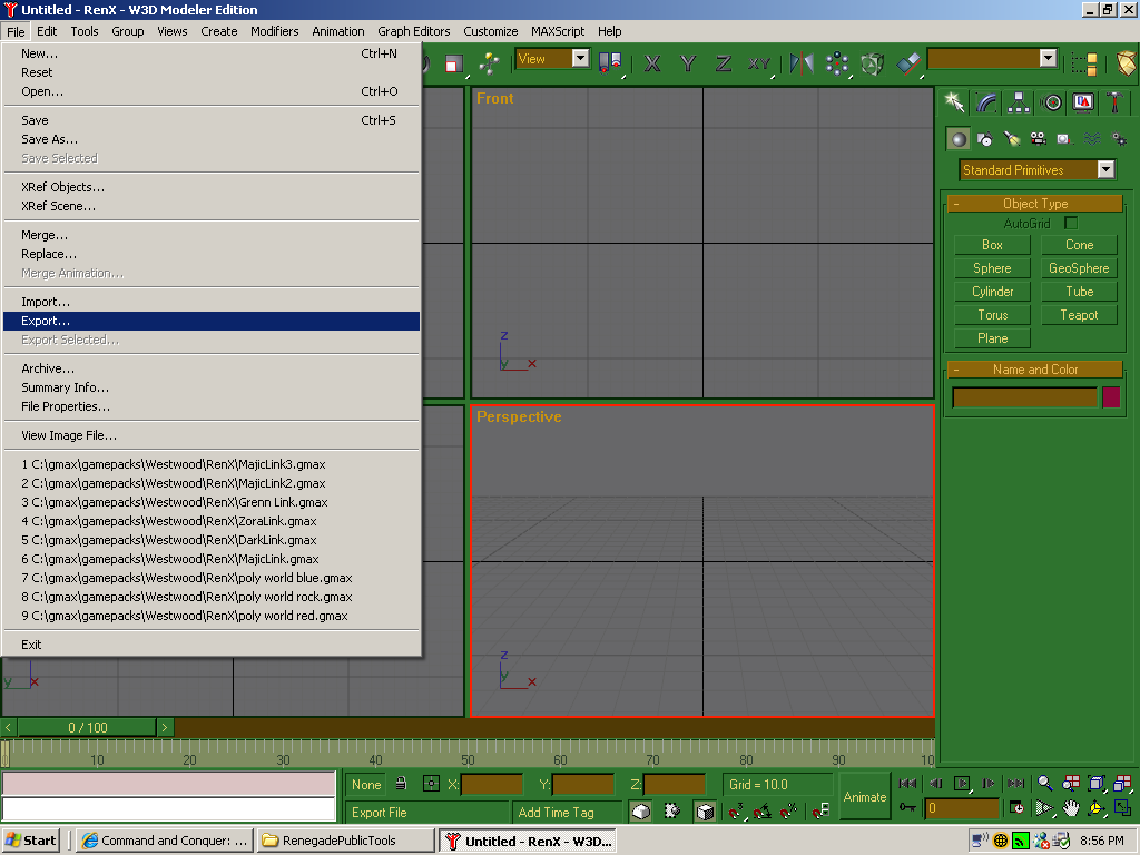 can some one give me screen shots of how to export stuff from gmax and renegade public tools trying to make a small mod