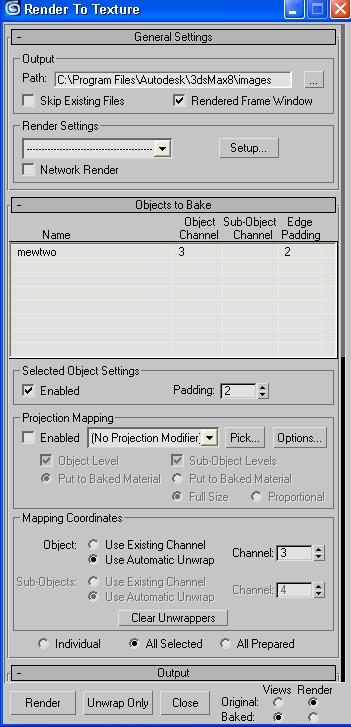 | Doitle wrote on Fri, 15 June 2007 02:09 | Try to get those settings under the Elements to un-gray. Maybe selecting the model or clicking add... will do something. At any rate, it's set to 128 right now. If you can find a way to modify that value then perhaps you cans elect a larger size like 512 or 1024. 128x128 is a really small texture. That could explain your problems.