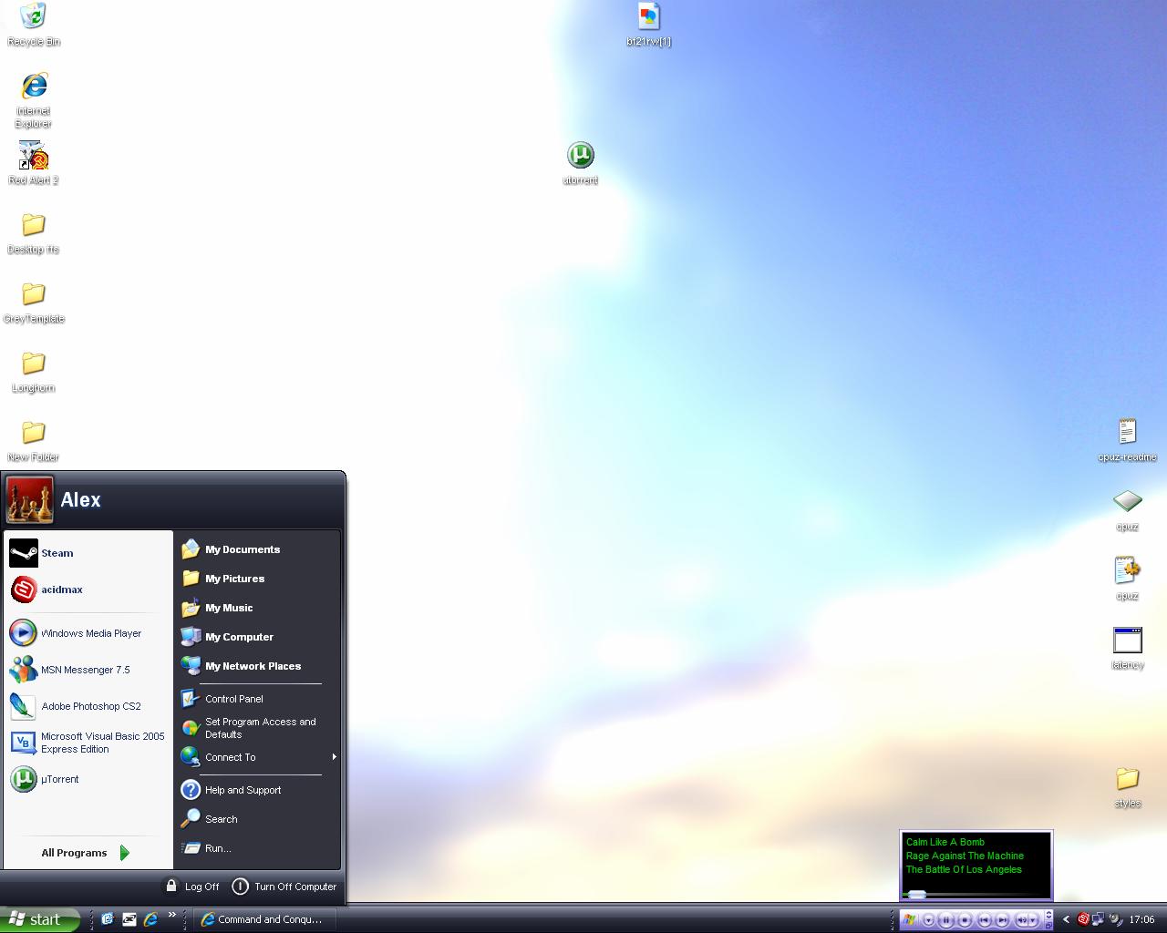Well, I'm on my 16" miscoulored monitor that I usually use as a secondary because myu 19" primary quit on me. So, here is my lower res than usual desktop: