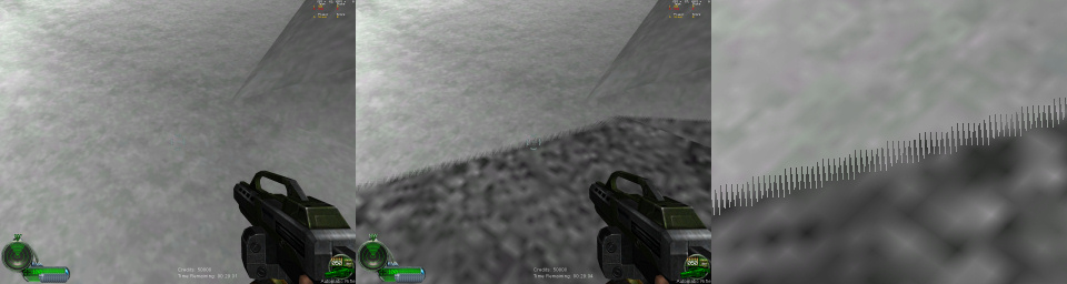 Okay that that your texture filter is set to Trilinear, I have noticed that the shader effects act differently under Bilinear. For example: if it is set to Bilinear it seemed to Improve the problem I was having with my "blast doors glitch" but who know, it could also cause problems with Alpha blend and stuff. Also make sure that the Lighting Mode is set to Multi-Texture Lightmaps. And keep in mind that some times when renegade crashes it will knock the the texture filter down to Bilinear and probably the same for the lighting mode.