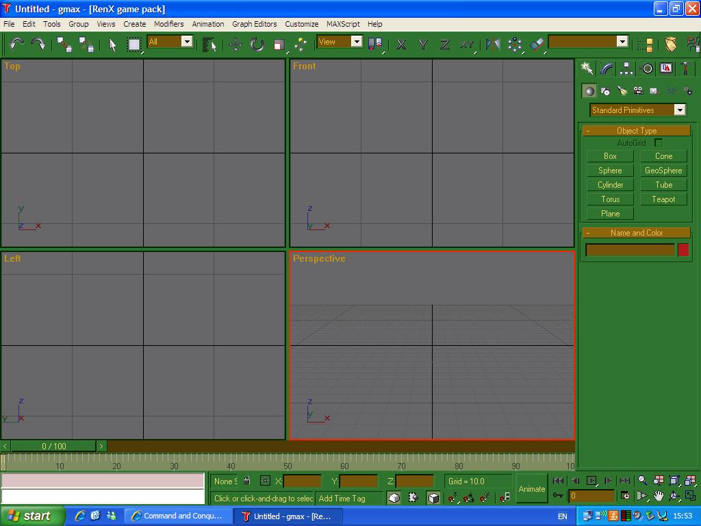 There are 2 SS's of what my RenX and GMAX look like below after loading...is there any setup further required of the 2 programs or am i good to go to the next phase(e.g Attempting to make basic terrain and texturising them?)