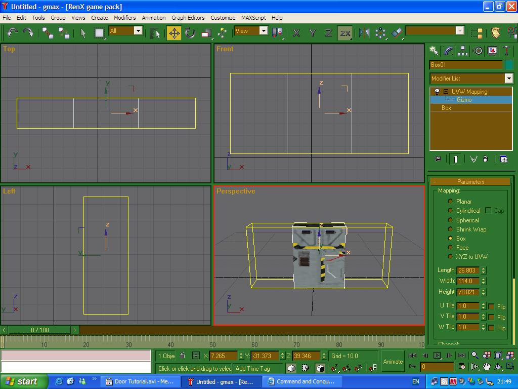 Just watch how I place a box and shape it. To apply materials in RenX just use the "M" key and do the same UVW Map as seen in the video.