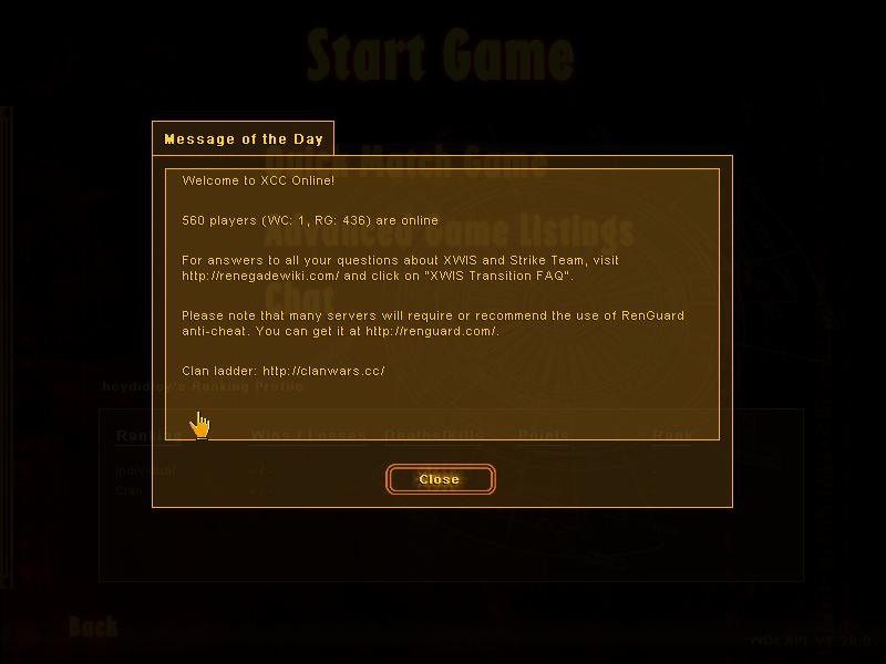 I noticed why there was 2 directories. In the renguard setup when it asks where to install, it's default is C:/Westwood\Renegade, the backslash isn't recognised by the system so it made a new directory called C:/WestwoodRenegade with all my renguard stuff in it... mystery solved, maybe you could warn someone about that in your install guide sticky? Also on step 5, the patch link doesn't work, I had to find somewhere new to download it from (not difficult, just annoying) so maybe you could put that in the sticky as well.