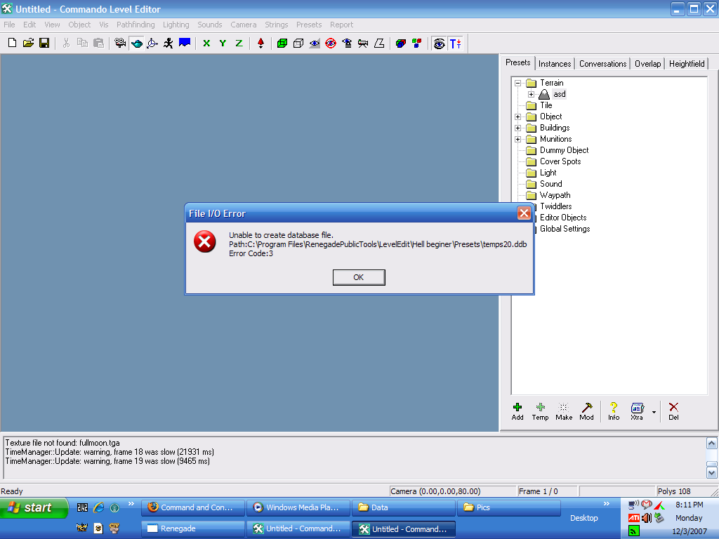 The First decade was released long after the original Renegade, EA decided to change the paths so Level Edit is trying to get files from the wrong location.