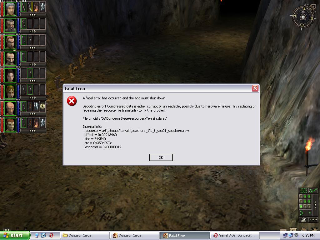 The problem seems basic enough. There's a file that needs replacing, and I should re-install to fix it. The only problem is that I misplaced my CD a while back ago, so I re-install. I've looked online for the file with no sucess. Can any Dungeon Siege player upload theirs? This is my last hope, since I really don't feel like shelling out money to buy a game I already own.