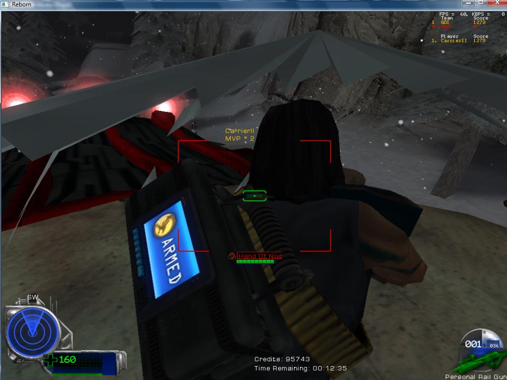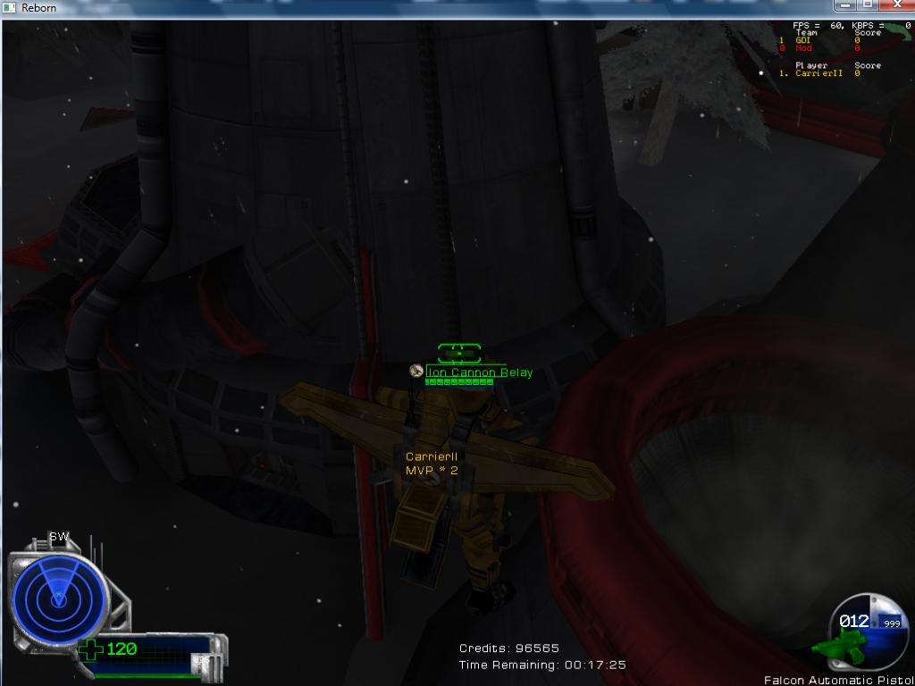 Did the same and was gonna report those just both just now. About the laser turret things, they can't hit me at all if I use a "the jump glitch" <-MAJOR issuse, maybe already been reported before? Anyway, in a 20min skirmish game, I found a few glitchs/bugs, (only on that freeze map), ill prob get around to making a topic about it on reborn forums. I was VERY surprised when the map loaded, it def doesn't look like the w3d engine...amazingly done! That along with the mod tools and FDS meterials already released and working smoothly? Im quite impressed.
